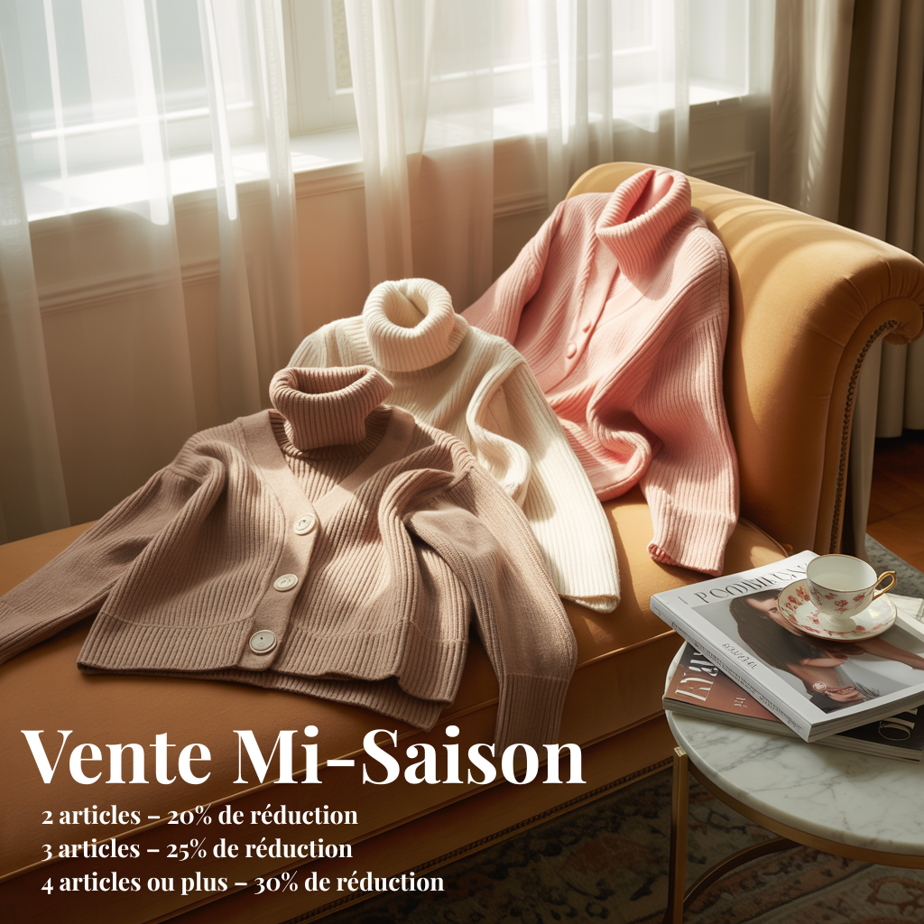 Inspirée par l’équilibre entre légèreté estivale et confort de saison, notre collection Mi-Saison associe style et praticité dans chaque détail. Des lignes épurées, des coupes confortables et une touche d’originalité pensées pour vous accompagner avec élégance, du matin au soir.